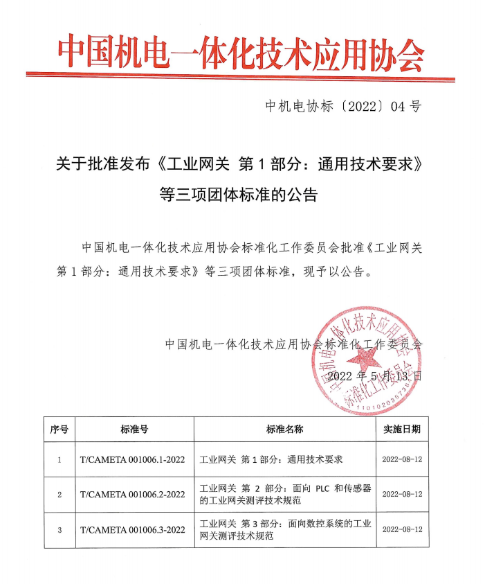 2022年5月13日,球盟会(中国)智通核心参编的工业网关标准,已正式顺利获得审批!将于2022年8月12日正式实施!