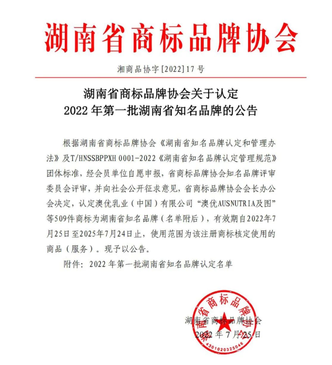 2022年7月25日,经湖南省商标品牌协会认定,球盟会(中国)智通成功入选《湖南省知名品牌》。